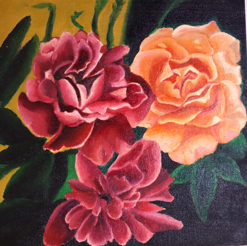 Red Flower Painting Print Red Rose Pink Rose 12x12 Inches Floral Bouquet Painting Print Rose Painting Orange Rose Floral Wall Art Oil Art Collectibles Vadel Com